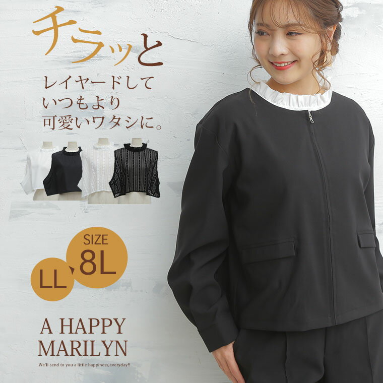 【432030/オフホワイト、ブラック、レースオフ、レースブラック】/【1/14】/【su】/ 【楽天BOX受取対象商品(レディースファッション)】モデル 身長【161cm】 【LL-4L(タグ2)サイズ着用】 コーデ商品…ジャケット 冬から春へ簡単衣替え!レイヤードつけ襟。